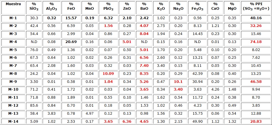 Se reporta por vez primera la identificación de dos fases mineralógicas que facilitan la contaminación de la región, la oxisal Melanterita y la Nnatrojarosita.