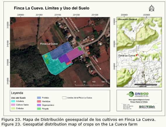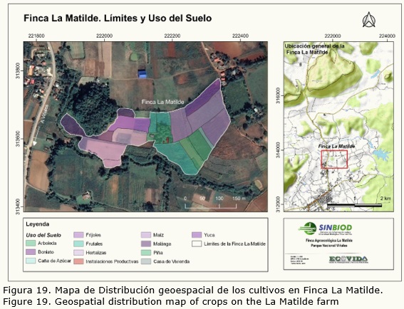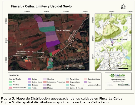 Se ha realizado un levantamiento en el terreno para la georreferenciación de la superficie de cada finca, así como la distribución espacial de los cultivos por sus categorías de producción, con un estudio de suelos y factores limitantes; lo cual constituye el punto de partida para aplicar medidas de adaptabilidad climática.