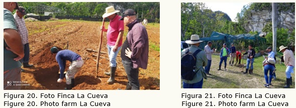 Las Fincas de Viñales identificadas en el proyecto que fueron visitadas en esta primera ocasión fueron Finca La Ceiba de la CCS Julio Antonio Mella en el Consejo Popular República de Chile, con una superficie total de 18 ha dedicada a cultivos varios como maíz, frijol, plátanos, yuca, malanga, boniatos y otros. Cuyo productor principal es Arael González Vizcaíno.